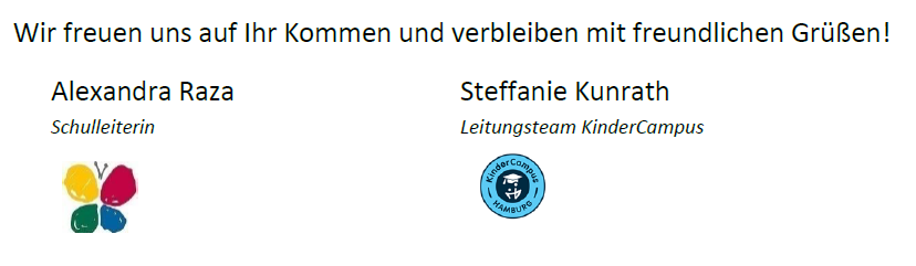 * = Frau Raza (Schulleiterin), Frau Kunrath (Nachmittagsleitung) und ein Mitglied des Elternrats sowie Kinder aus der 4. Klasse.